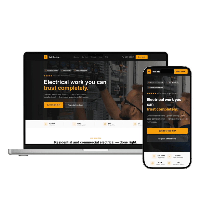 "You'll have a professional site live in a week, for less than your morning Tim's run. If it's not bringing in calls, just cancel. You're never locked in."